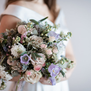 Liebt ihr zarte Pastellfarben? Wir auch, deshalb haben wir uns direkt in das Farbkonzept aus Hellblau, zartem Lila, Rosé und hellem Grün verliebt. Wenn ihr grade mitten in den Vorbereitungen für eure Hochzeit steckt, werdet ihr in diesem Styled Shoot viele Inspirationen finden. So zum Beispiel für den Blumenschmuck. Falls ihr der Meinung seid, für eine romantische Almhochzeit im Winter gibt es keine passenden Blumen, liegt ihr falsch. Das beweist die Floristin von Blume Boutique. Die Tische hat sie mit vielen zarten Einzelblumen ausschließlich in den Pastellfarben Rosé und zartem Lila dekoriert. Diese stecken in Glasflaschen und sind jeweils mittig in einer langen Reihe arrangiert. Das passt wunderbar zu den rustikalen Holztischen und den mit Fellen dekorierten Stühlen. Sehr fein. Die Braut mag es bei ihrem Brautstrauß etwas üppiger. Wobei das Highlight sicherlich ihr Blumenkranz ist, der sie zu einer Mischung aus Elfe und Schneekönigin macht.
